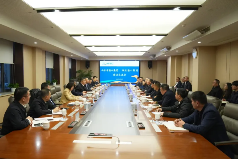 在与湖北港口集团座谈交流中,双方回顾了鄂鲁两港多年来协同创新、通江达海取得的务实成果。一致认为,湖北港口集团作为湖北省港口航运的“主力军”,在港航枢纽建设、临港园区运营、供应链物流发展等方面具有显著优势,发挥着保障区域物流畅通、服务地方经济社会发展的关键作用。作为全球领先的港口集团,山东港口通过港口运营、供应链综合服务、港口园区配套服务“三大赛道”联合发力,推动世界级海洋港口群能级持续跃升,供应链综合服务优势不断塑强,擦亮了“山东港口,不止于港”的品牌。双方一致表示,将加强沟通对接、完善协同机制,在党建共建、人才培养、智慧绿色港口建设、江海联运、临港产业集聚等方面提升合作能级,积极培育港航新质生产力,尽快推动项目落地结果,为鄂鲁两省经济社会高质量发展、深度服务国家发展战略作出新的更大贡献。